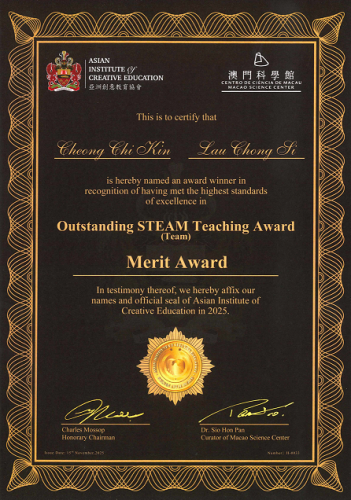 We’re excited to announce that Mr. Kevin Cheong and Ms. Marcella Lau, representing our STEM Team and GS Department, have received a Merit Award in the Outstanding STEAM Teaching category at the 2025 Golden Apple Awards, hosted by the Asian Institute of Creative Education.
